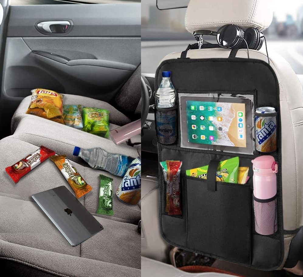 A back-of-the-car seat organizer is great for keeping small and large items in one easy-to-reach spot