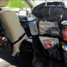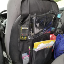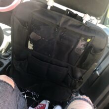 A back-of-the-car seat organizer is great for keeping small and large items in one easy-to-reach spot