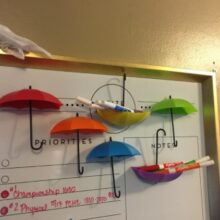 These little umbrellas are so cute. I put them in a corner of our room. I've got rings, necklaces, bracelets and small charms on them. They have a very adhesive back and a good hold. They're very bright colored and I'd reccomend to others. Would be great in a child's room.
