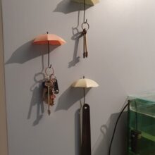 These umbrella key hooks are so cute! I did not give a great rating for adhesion because I used Command Strips to put them up as I am in a rented home. Otherwise I like them a lot!