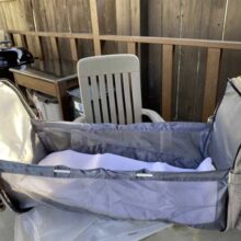Getting set up is a cinch: simply fold the crib into the neat backpack in three steps: