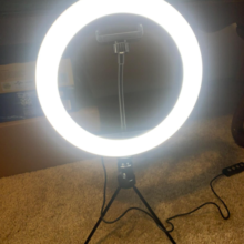 This is the perfect little light ring! My others are too big for counter top filming like for face washing videos. I mounted this one to the mirror in my spare bathroom using command strips. That way I can take it on and off as needed. It’s big enough for my phone to fit in the center and bright enough for what I need it to do! Great price!
