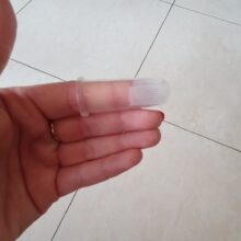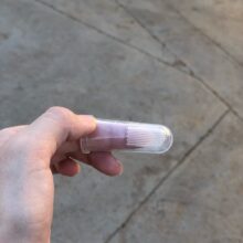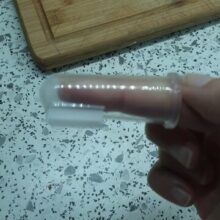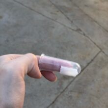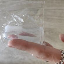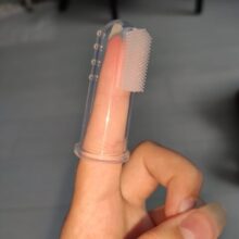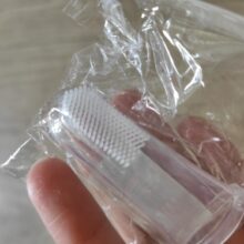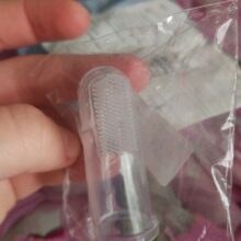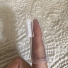 Our baby is teething and she loves when I ‘brush’ her teeth (mostly her gums-she only has 2 teeth!) These little finger toothbrushes fit well over my index finger and aren’t too bulky for baby’s little mouth. I like that there is a ‘bristle’ side, and a slightly raised, bumpy other side to them. Also love that they have their own individual cases- Makes them great for travel, and storage in baby’s diaper bag. They are thicker than the other baby toothbrush we tried, which I prefer, because baby doesn’t hurt my finger when she ‘chews’ while I’m brushing her teeth. Wish they came in more than one size though-my husbands a big guy and he isn’t able to use them.